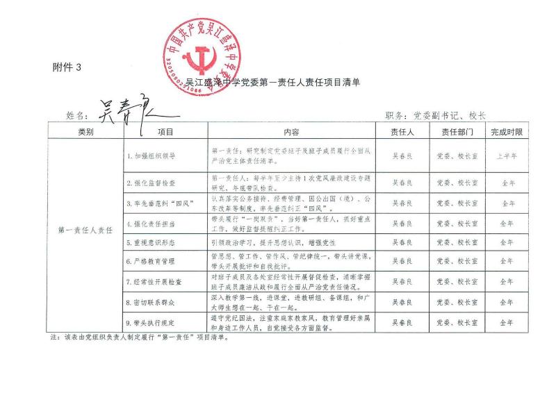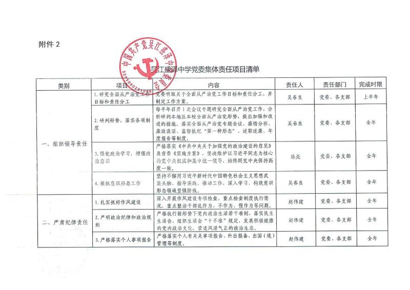 研究制订党委集体责任清单和个人责任清单