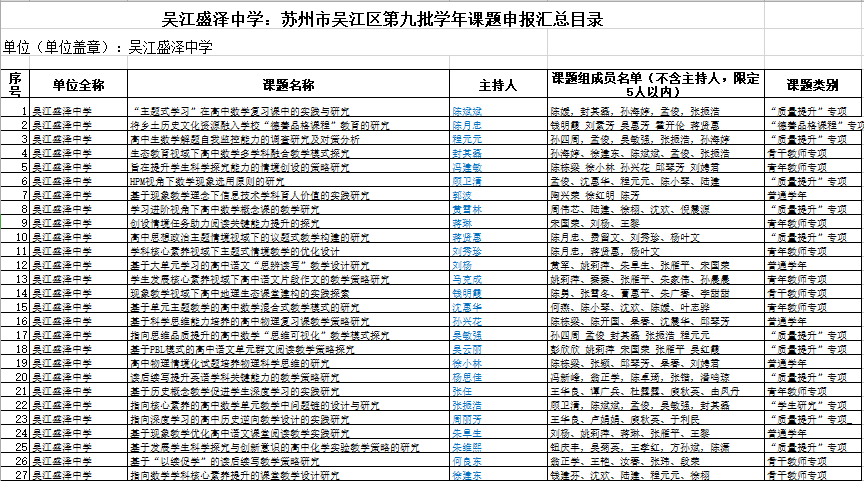 本学期我校积极教师积极参保各项课题研究工作,寄予通过课题研究不断提升教师的教科研能力,积极发挥科研对教学的反哺作用,不断提高教育教学质量。本学期,我校成功立项吴江区第十批学年课题33项、苏州市教育科学“十四五”(2023年度)4项、江苏省陶行知研究会“十四五”规划课题(2023年度)4项。
