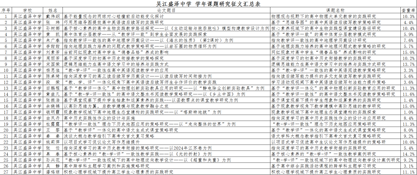 2.吴江区课题论文评比活动,我校教师参与人情较高,有27篇教学论文参赛。