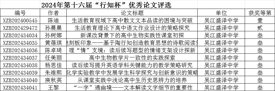4.苏州市教育教学成果奖获奖:我校周丽芳老师参加季芳老师主持的《学段贯通领域下初高中历史教学衔接的十年探索》获2024年苏州市教育教学成果一等奖。